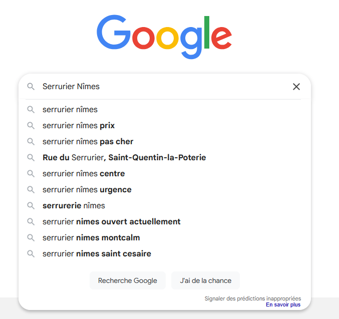 Exemple : Vous tapez « serrurier paris 11 » → Google propose « serrurier paris 11 pas cher », « serrurier paris 11 urgence », « serrurier paris 11 avis », « serrurier paris 11 ouvert dimanche ».